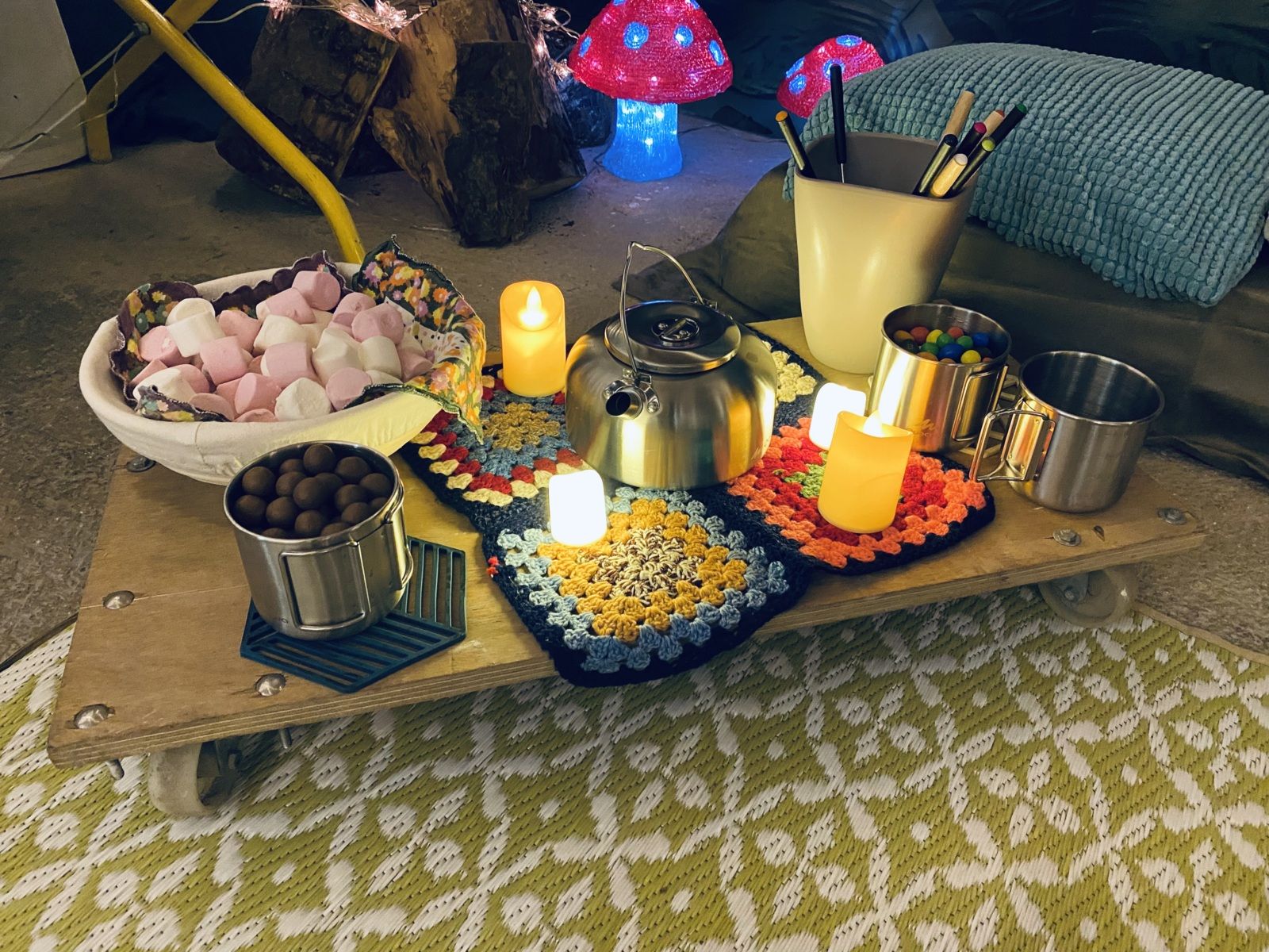 J’ai bien vu que ça tenait à coeur à Louison de faire découvrir ce moment et ces gourmandises à ses copines. Alors j’ai eu l’idée d’utiliser des réchauds de trek/camping. L’un est à nous, l’autre est emprunté.