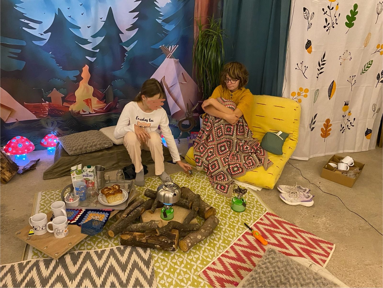 A la place, les filles y ont installé leur campement !! Les 2 sont scouts et adorent dormir en tente alors quoi de mieux pour conclure cet anniversaire.